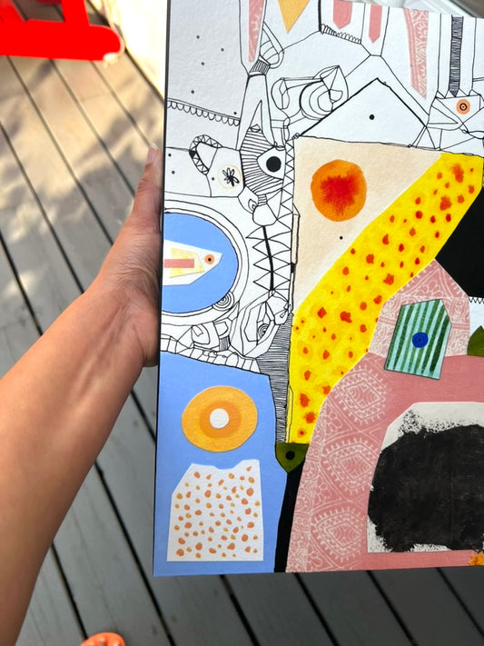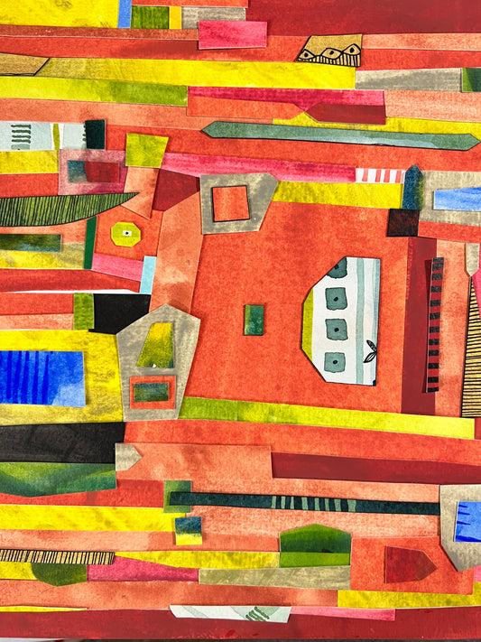 Vibrant and colorful collages created with thick textured paper by local Madison, WI artist Sneha Mahajan.